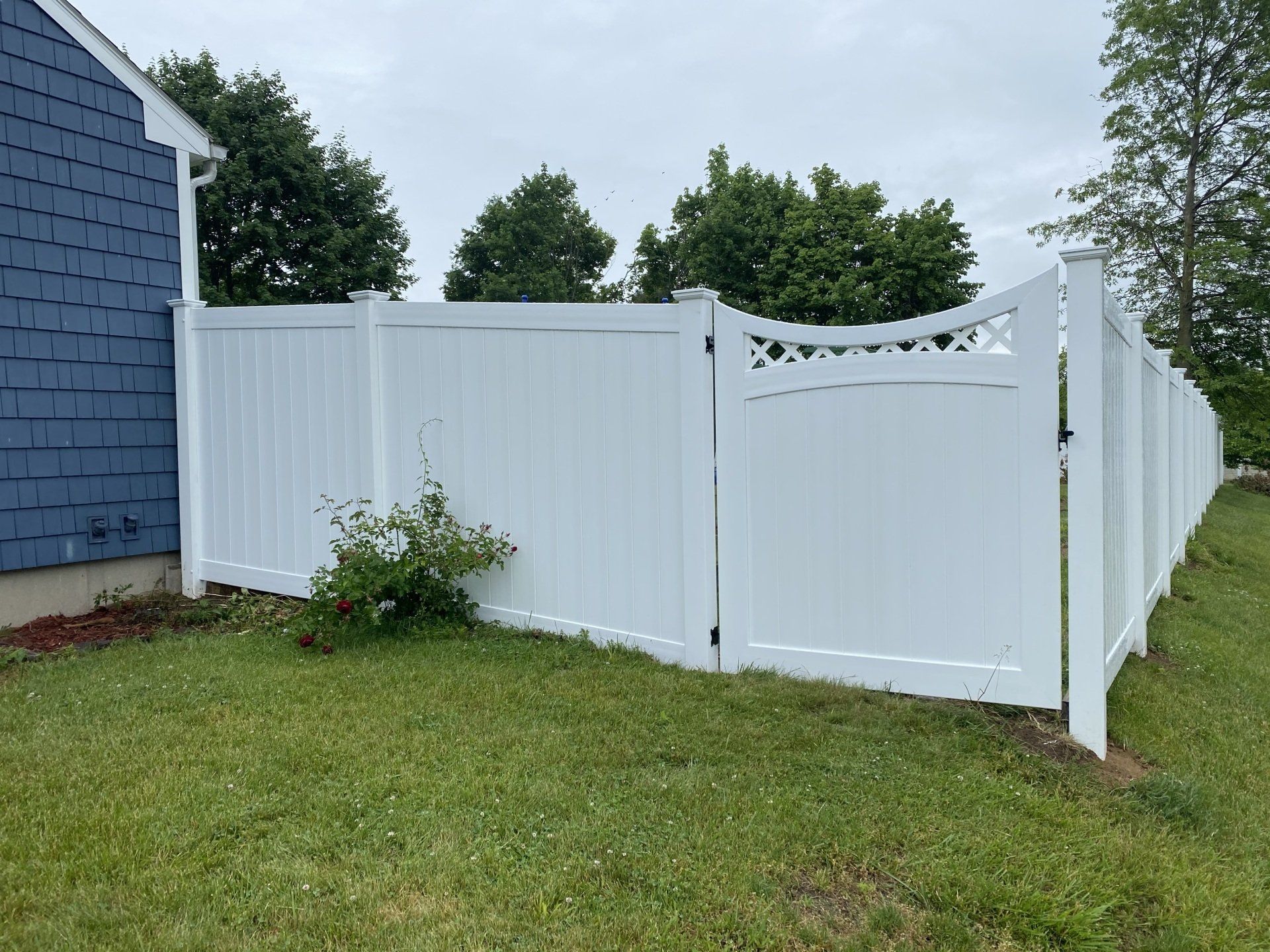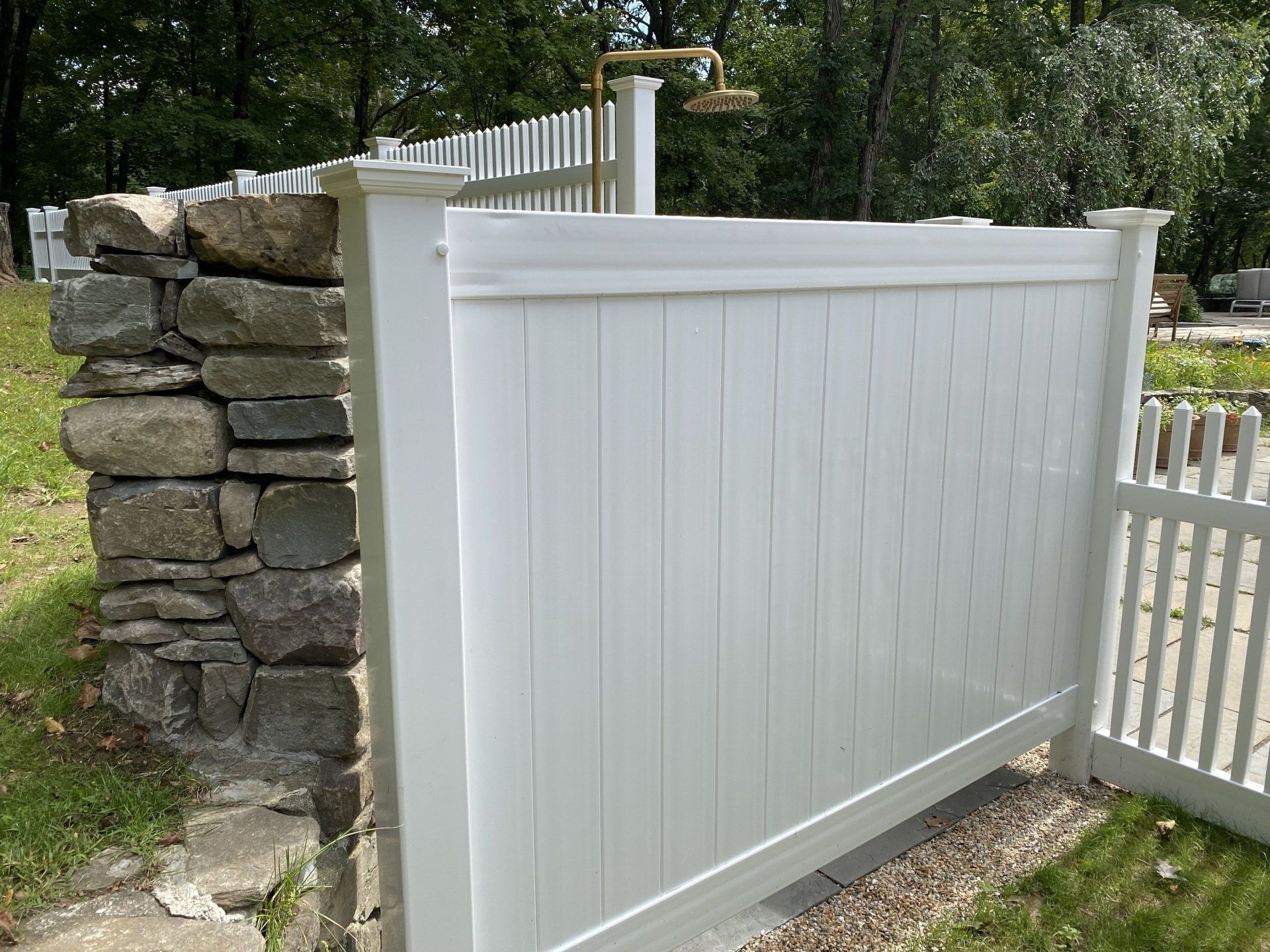 When vinyl fencing first arrived it came in four styles and the color was white only. Today, there are more than 300 styles and unlimited colors to choose from. Maintenance free, vinyl fencing has become the home owner choice for beauty and endurance. As the culture moves forward however, wood is gaining new appeal. The industry has responded by manufacturing a vinyl with wood grain appearance as well as a smoother deep redwood or cedar look. The styles in wood-look vinyl are gorgeous. Most companies are introducing these lines in a solid tongue and groove privacy style. We offer them in all of our vinyl styles from privacy to post and rail.