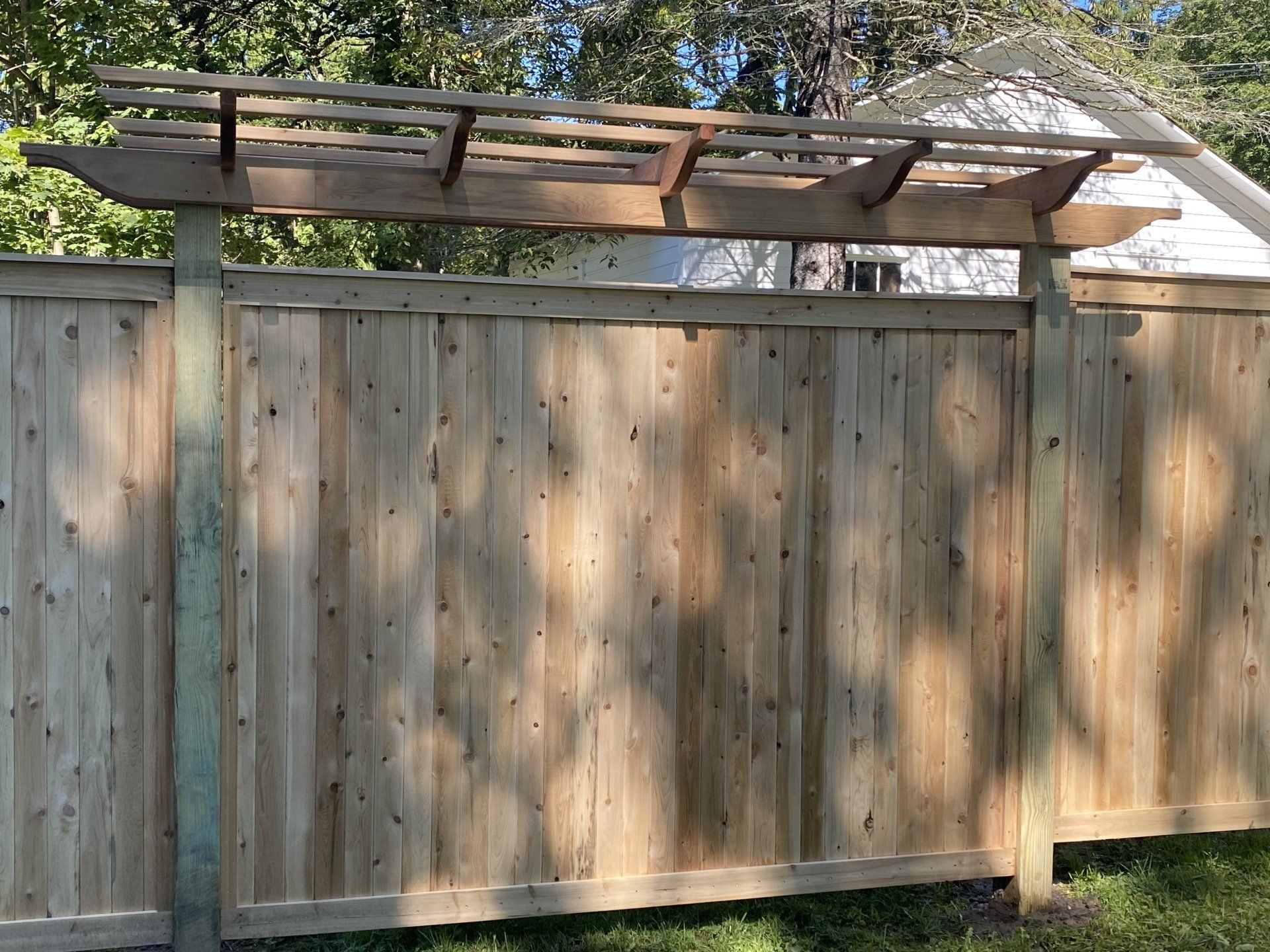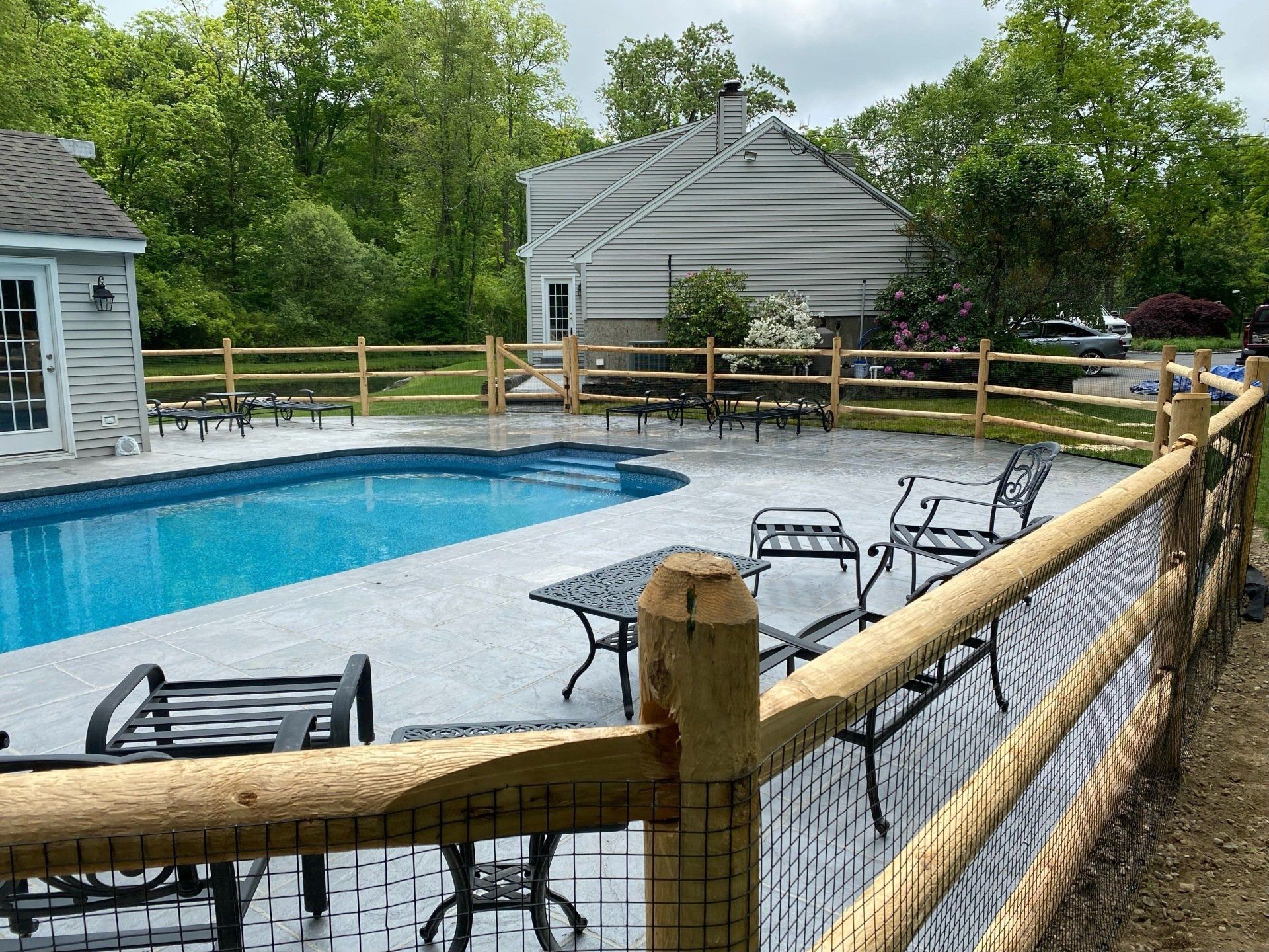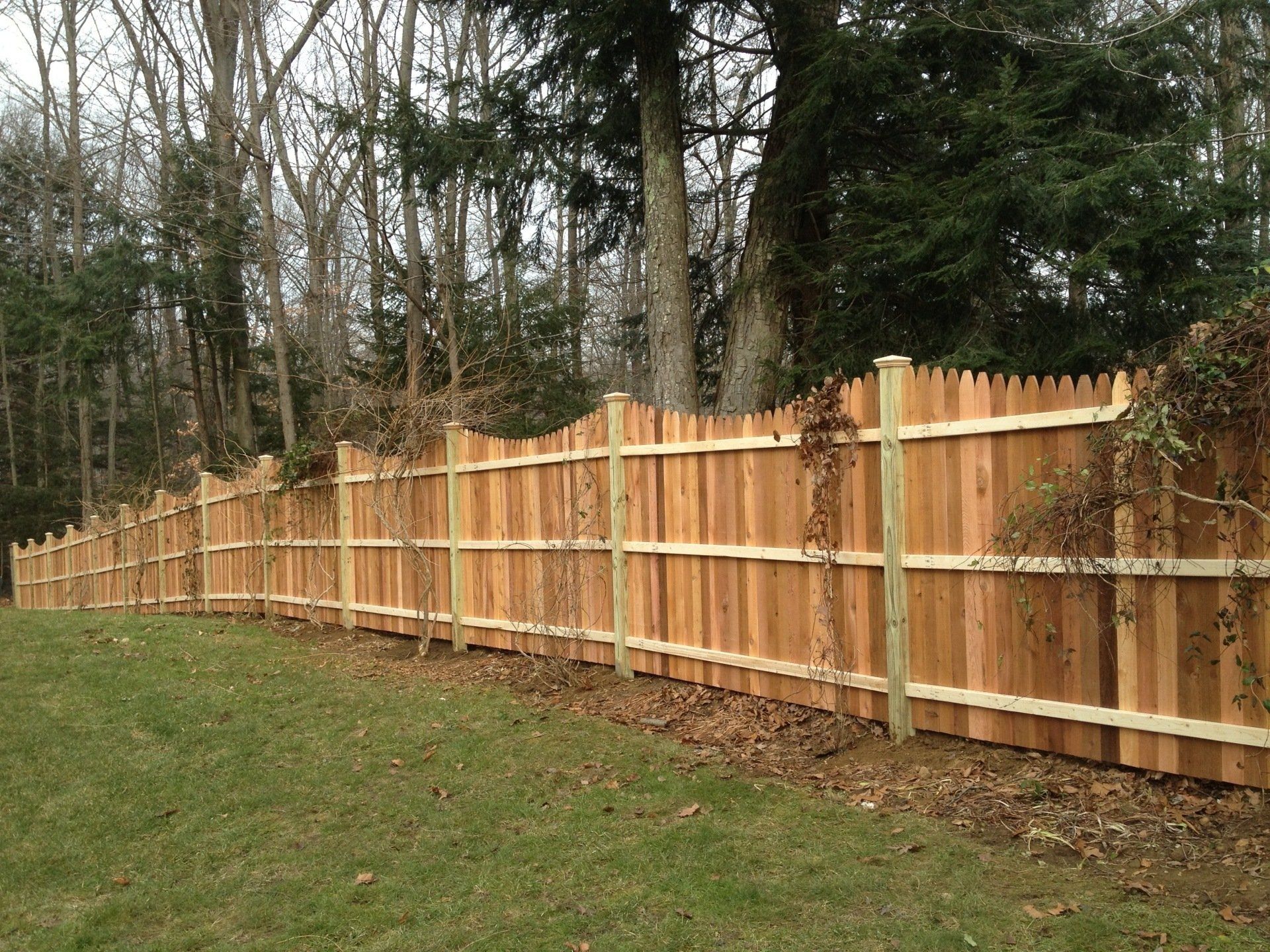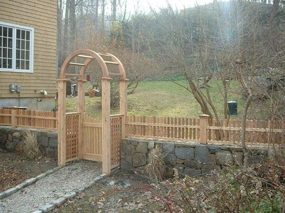 The appreciation of the old time beauty of wood continues through out New England. Our wooden fencing is available in #1 cedar, pressure treated pine, spruce, locust, mahogany, or bamboo. Posts also come in BARK ON for a more rustic appearance. The most important aspect of wood fence is care. Wood should always be treated and sealed. Wood fencing comes in more than 500 variations and is used for decor, pools, rock walls, privacy, lamp posts, driveway gates, pergolas, and arbors. It can be stained almost any color and when treated and maintained properly will last a lifetime.